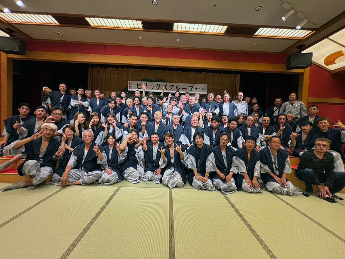 令和6年度ヒリックスグループ合同忘年会 令和6年11月23.24日(土.日) 「山代温泉ゆのくに天祥」にて令和6年度ヒリックスグループ合同忘年会を開催しました。 和太鼓演舞で始まった忘年会は普段あまり交流する機会の少ないグループ社員同士、楽しく交流することが出来ました。 大鉄工業株式会社 TEL:0779-66-0617 〒912-0006 福井県大野市庄林23-10-1