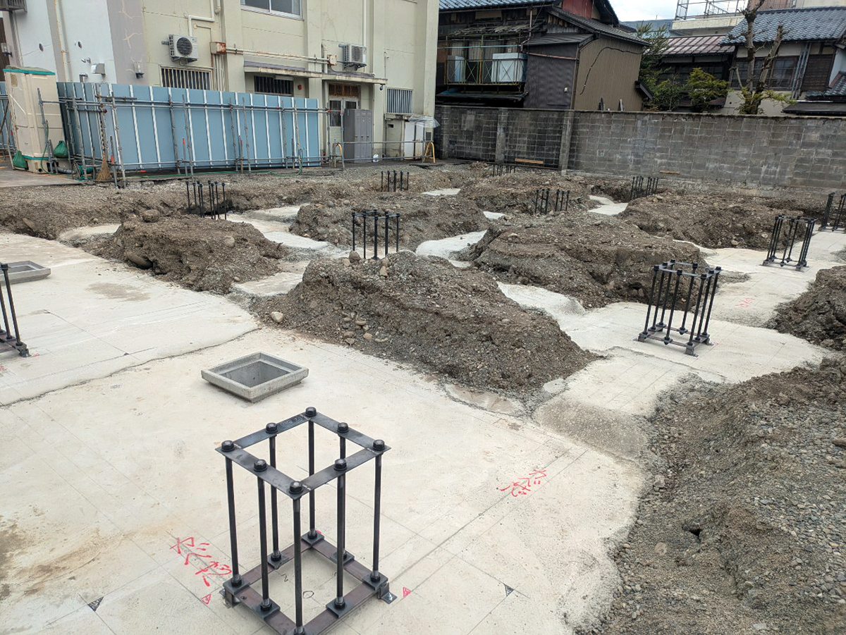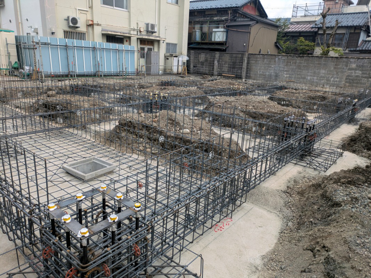 白亜紀ダイナ荘新築工事 3階建てのマンション兼店舗 1階が銀行さんの店舗で、2階、3階が学生さん向けのマンションになります。 鉄筋の基礎工事が完了しました。 大鉄工業株式会社 TEL:0779-66-0617 〒912-0006 福井県大野市庄林23-10-1